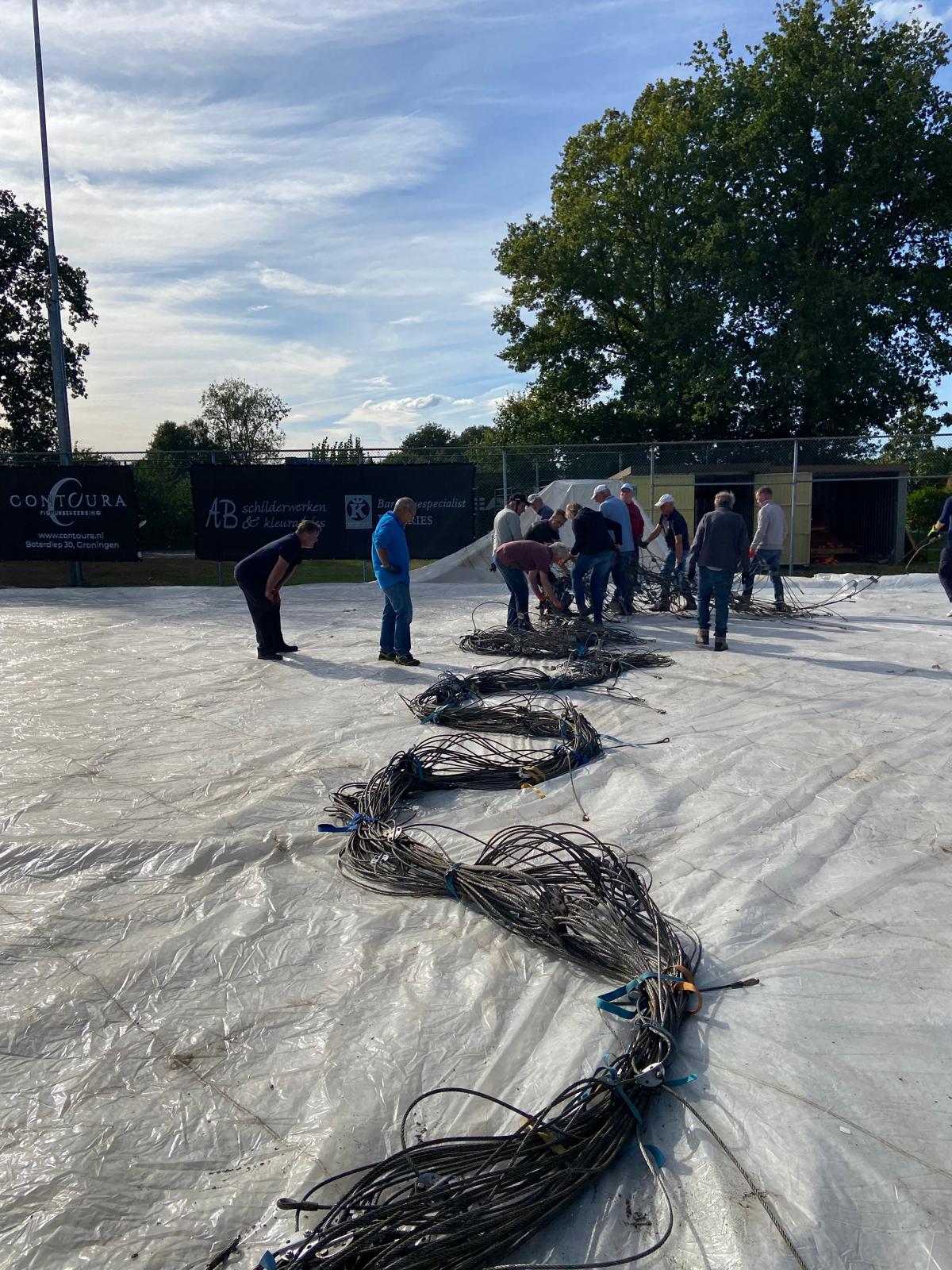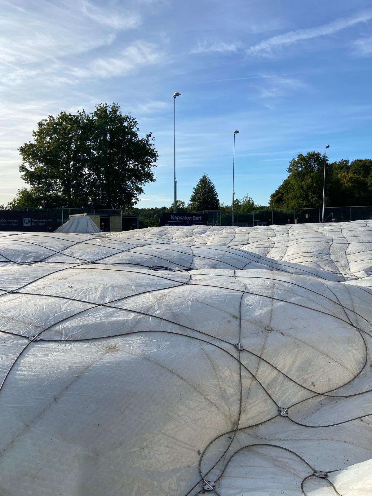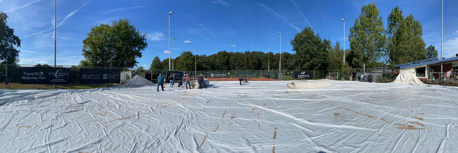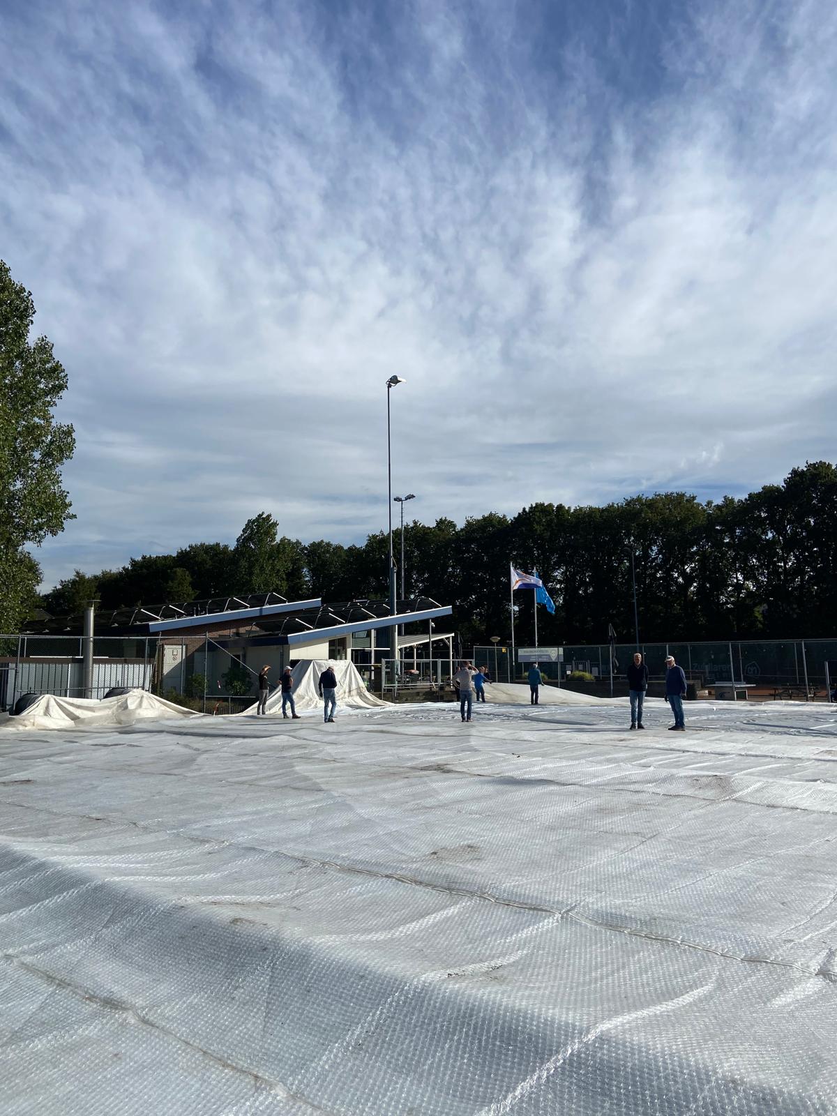 Afgelopen donderdag 26 september ging het team van onze club flink aan de slag: maar liefst 20 vrijwilligers zetten zich in om baan 6 en 7 winterklaar te maken met de opbouw van de blaashal.